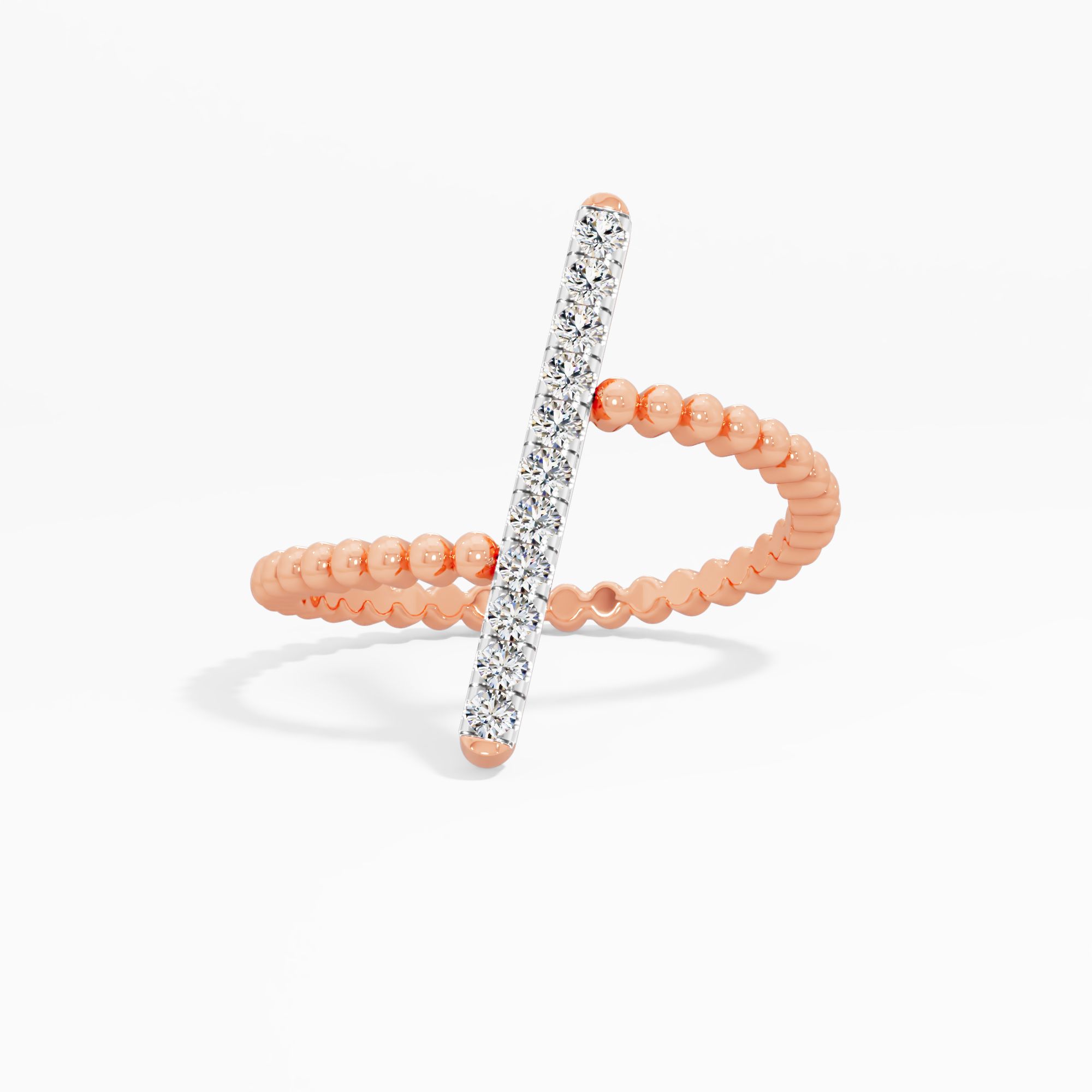 Beaded Bypass Bar Diamond Ring