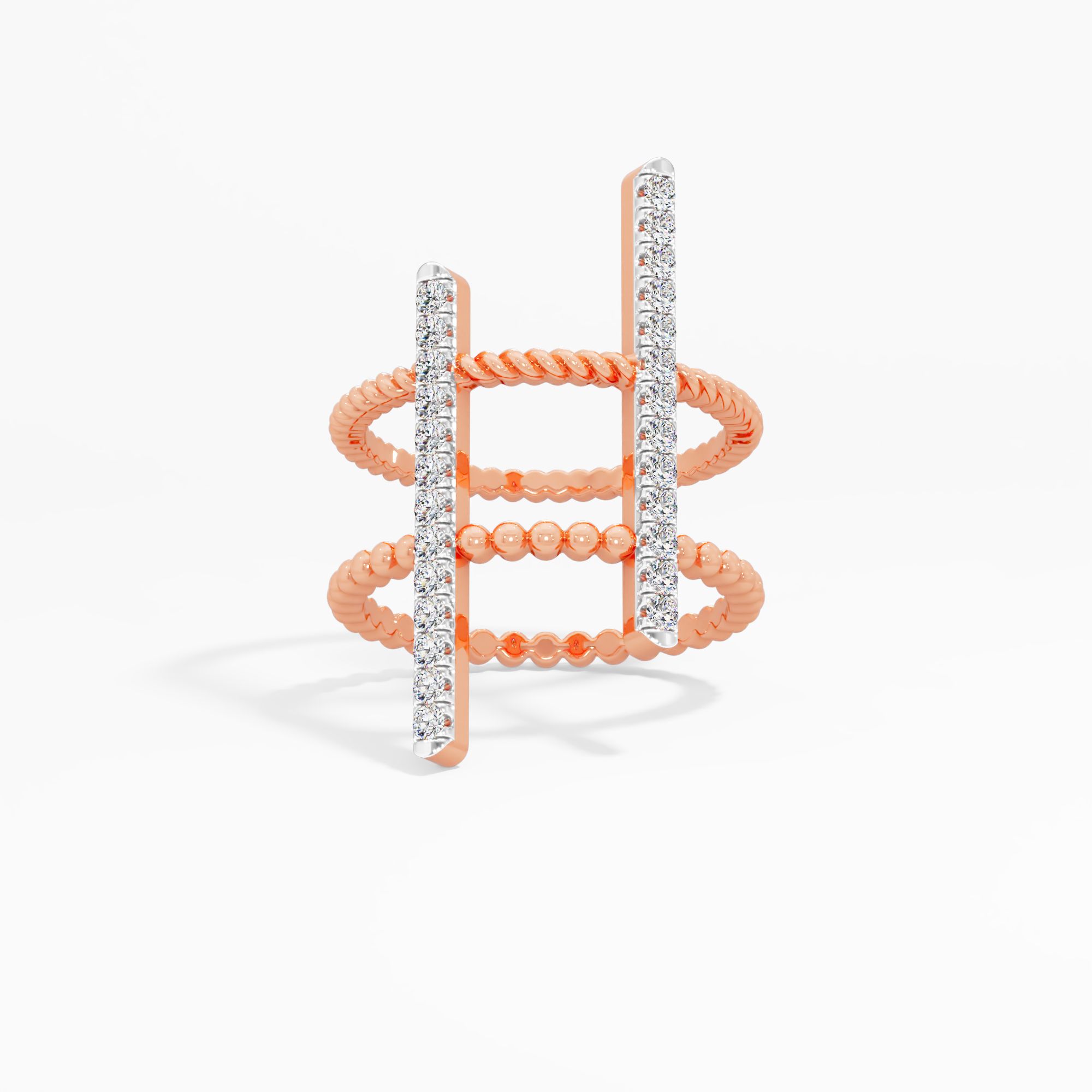 Striking open-style ladies ring featuring twin vertical pavé round diamond bars and layered beaded bands, blending modern geometry, textured detailing, and radiant sparkle for a b... Read More