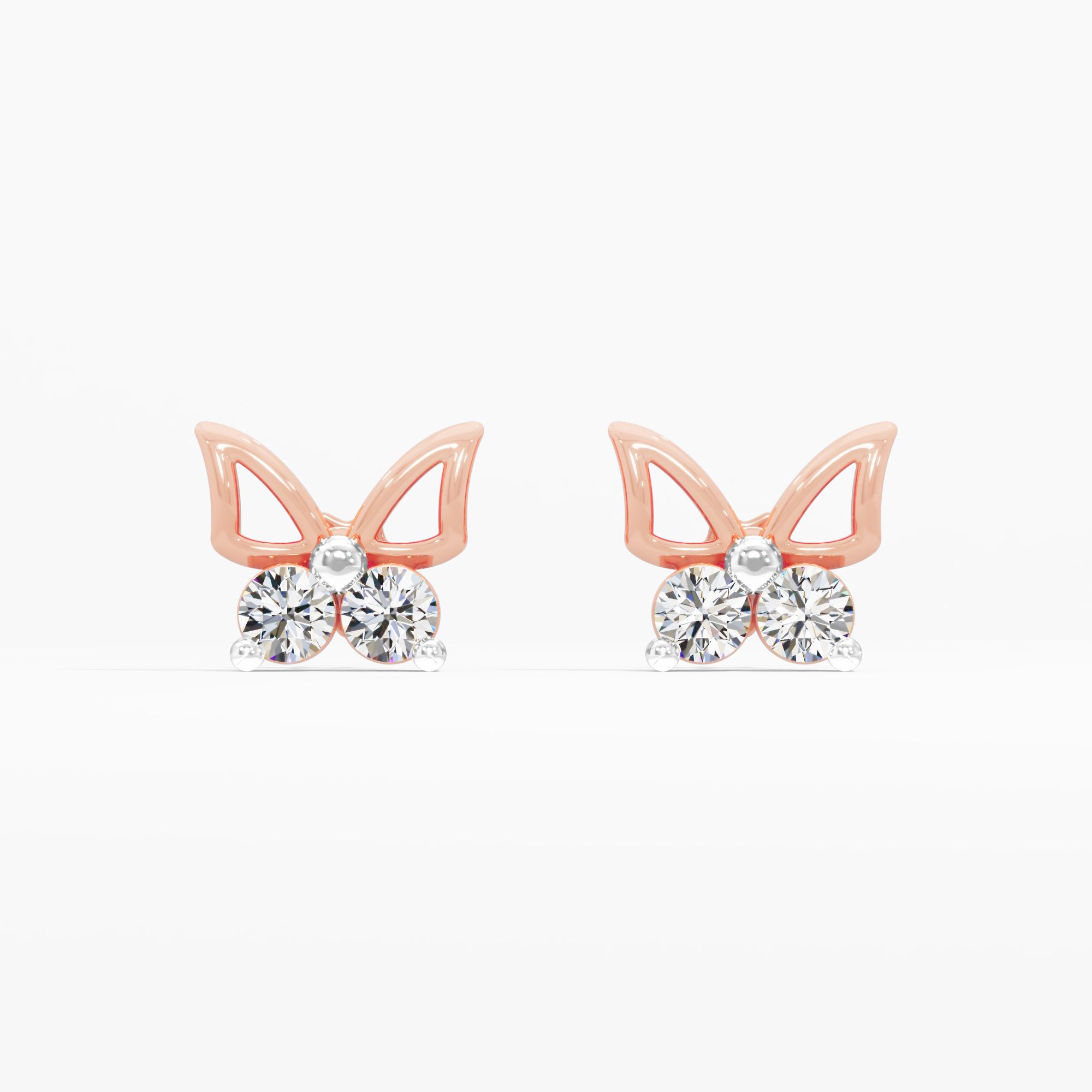 Playful studs showcasing round lab-grown diamonds embraced by sculpted open butterfly wings, offering a unique blend of modern earrings design and classic sparkle.
