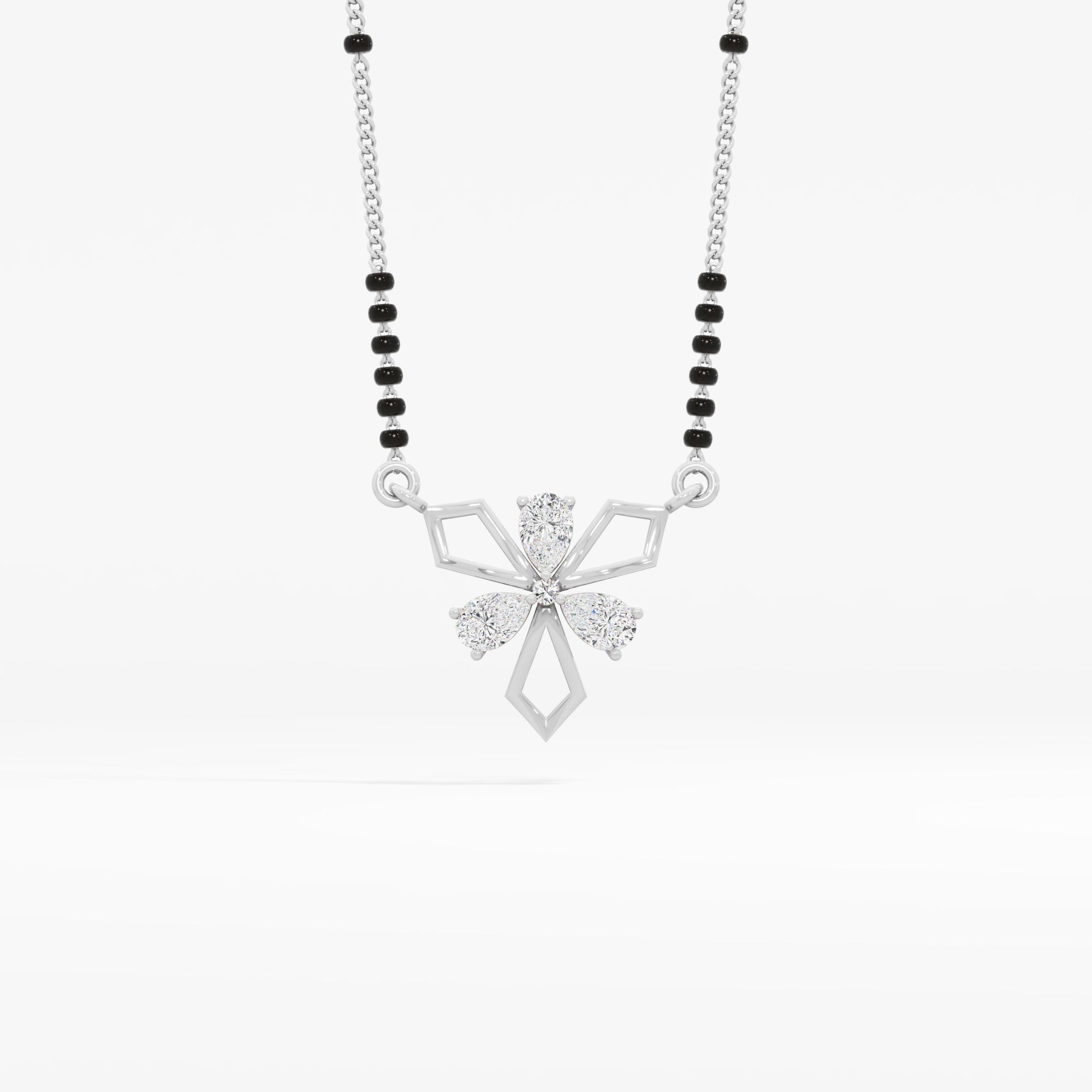 Forever Linked mangalsutra pendant in gold featuring three pear-shaped lab grown diamonds embracing a radiant round center diamond, symbolizing eternal connection with modern elega... Read More