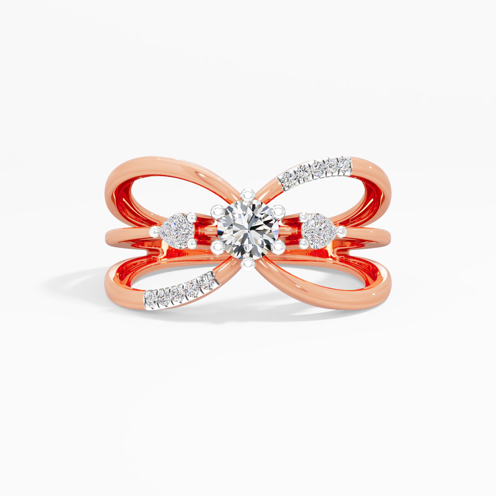 Elegant round solitaire accented with pear-shaped side stones and sparkling diamonds, featuring a graceful infinity-inspired crossover band that adds modern brilliance and timeless... Read More