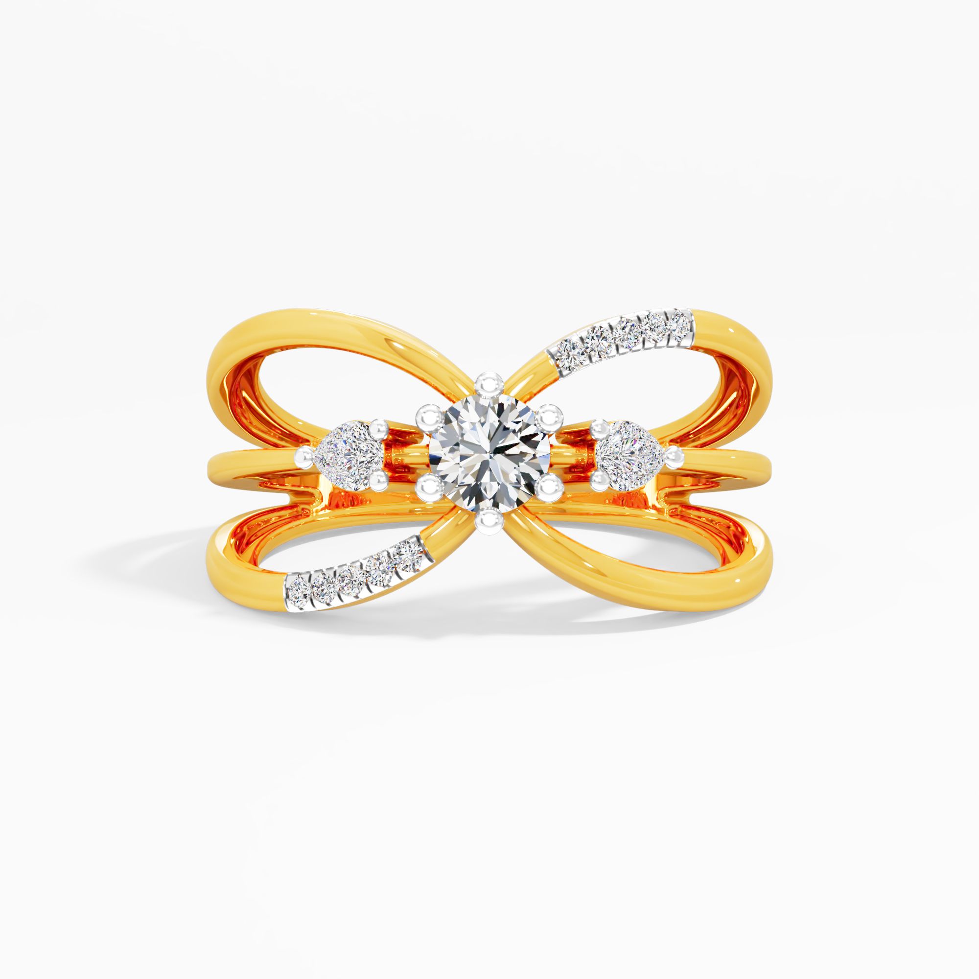 Elegant round solitaire accented with pear-shaped side stones and sparkling diamonds, featuring a graceful infinity-inspired crossover band that adds modern brilliance and timeless... Read More