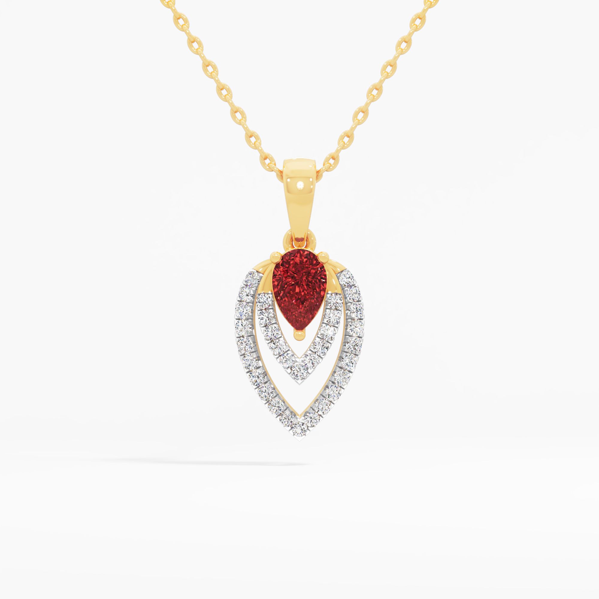Diamond DetailsShape Round Color FG Clarity VVS VS Pieces 32 Total Weight 0.22 ct Gemstone DetailsShape Pear Color Red Clarity NA Pieces 1 Total Weight 0.50 ct