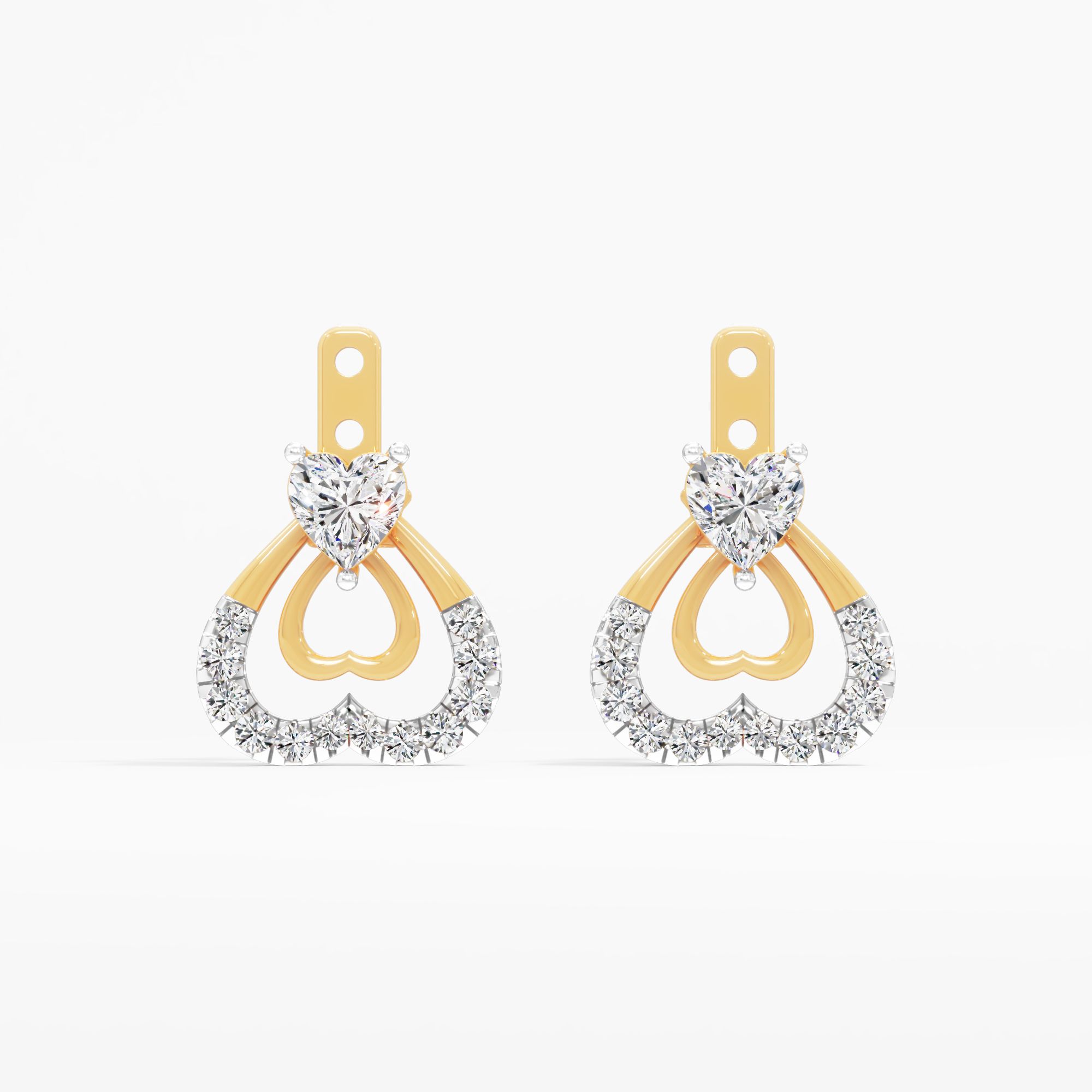 Romantic drops highlighting a heart-shaped lab-grown diamond, suspending a round diamond-lined open heart frame that nests a smaller polished gold heart for a lovely layered silhou... Read More