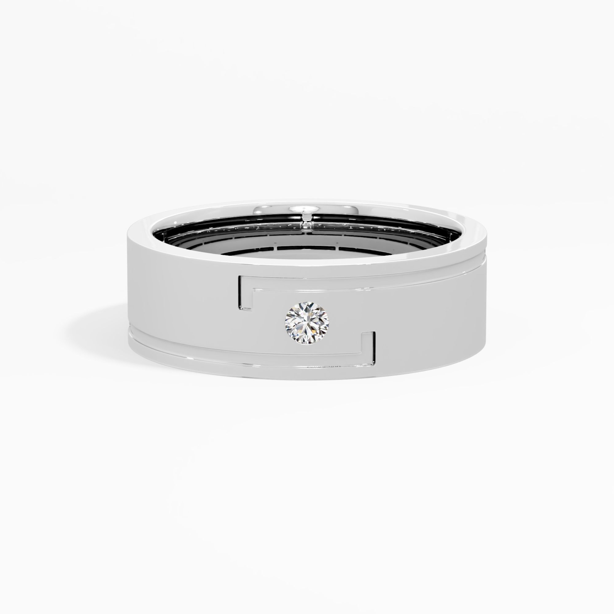 Wide gents gold band featuring a single round diamond framed by flowing pathway cuts, creating a bold yet minimal look that symbolizes direction, strength, and modern masculine sty... Read More