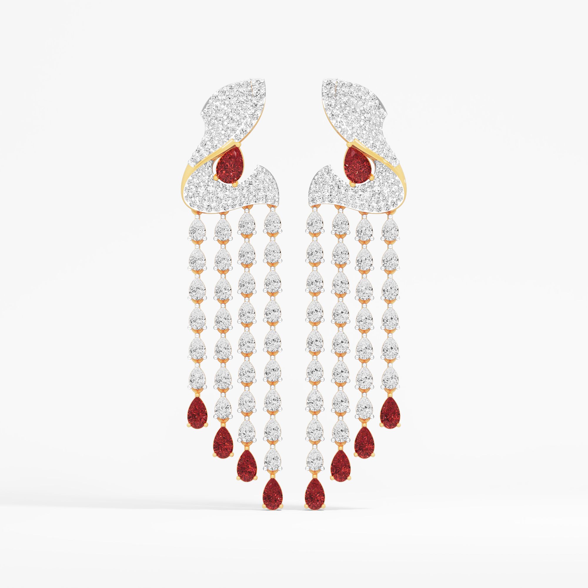 Capturing a dreamlike celestial glow, these majestic dangle earrings feature cascading tiers of pear red gemstones and brilliant round and pear lab-grown diamonds in a shimmering, ... Read More
