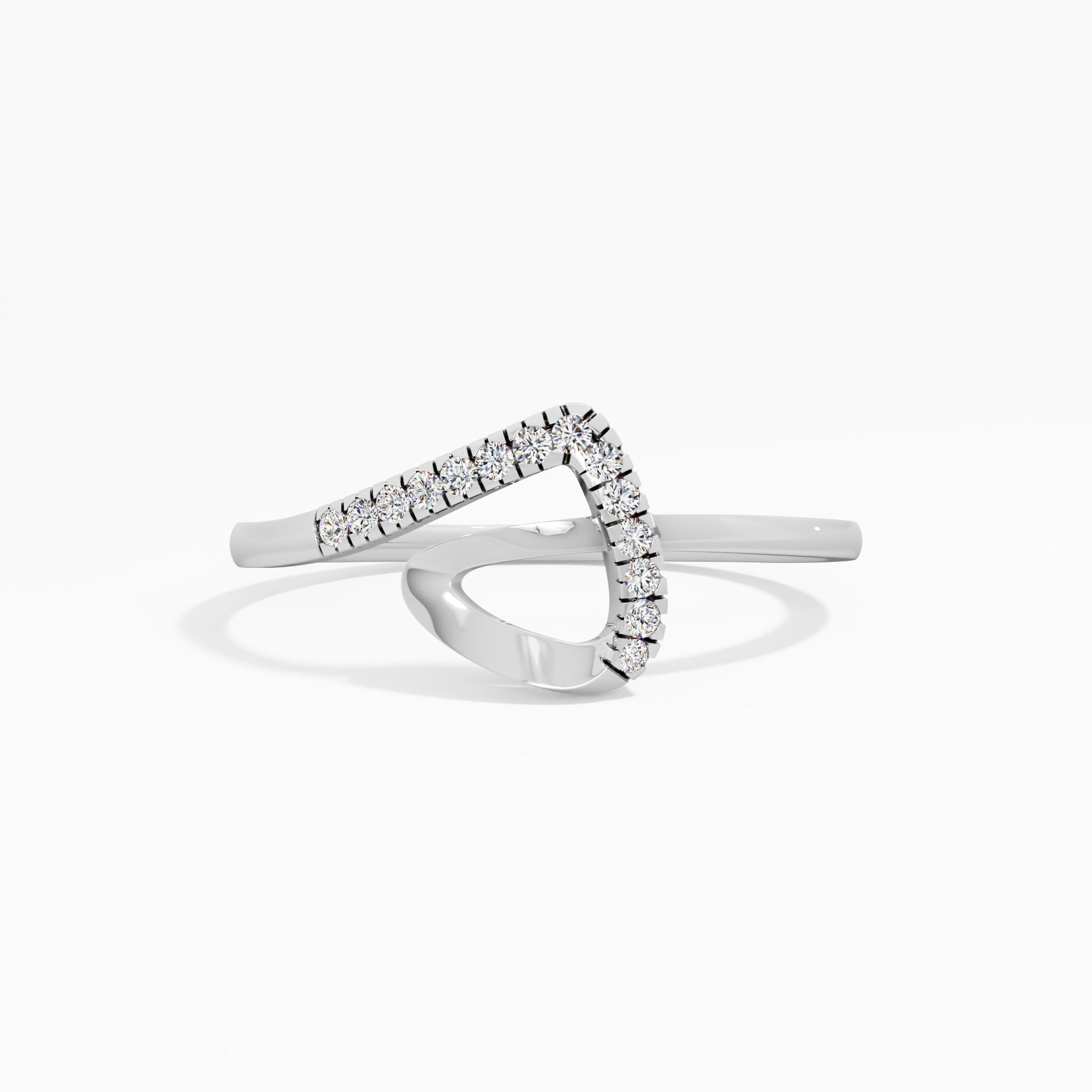 Shimmering round lab grown diamonds trace an elegant, asymmetric V-shape band. This modern Vanki design represents reaching your personal peak with grace, brilliance, and a bold co... Read More