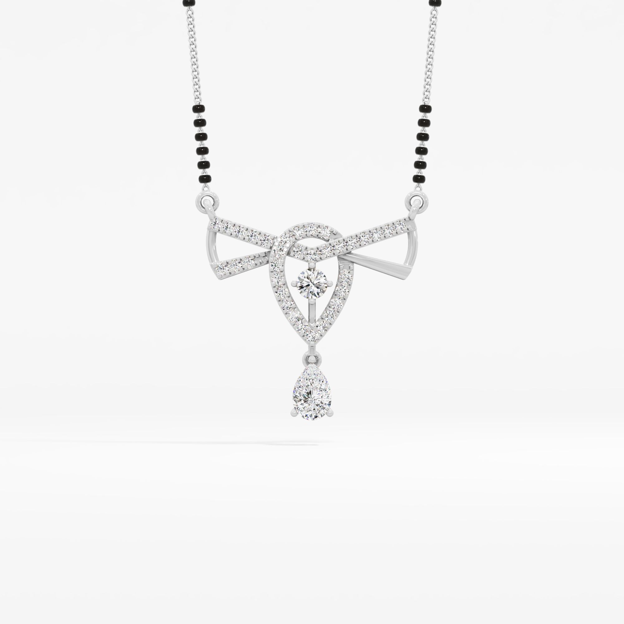 Ribboned pear-frame pendant with pavé curves, centre bloom and pear dangler in lab-grown diamonds. Pendant only, without chain.