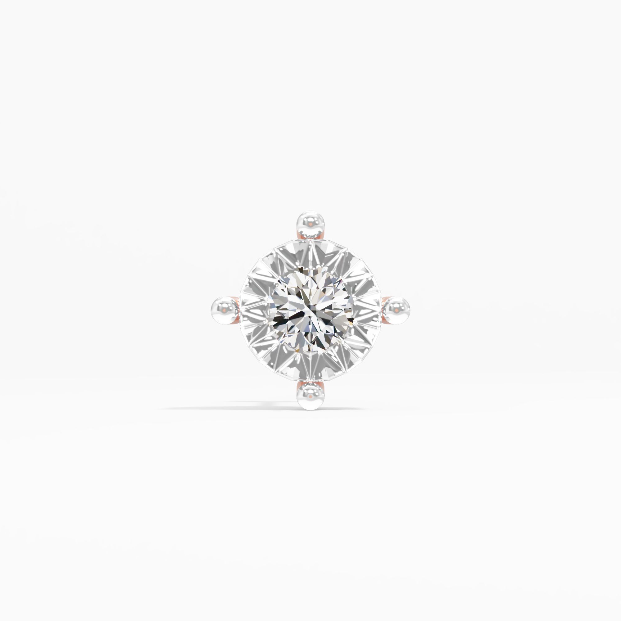 A solitaire fit for royalty. This nosepin features a brilliant round diamond held aloft in a four-prong crown, its regal gallery detailed with elegant, royal scallops.
