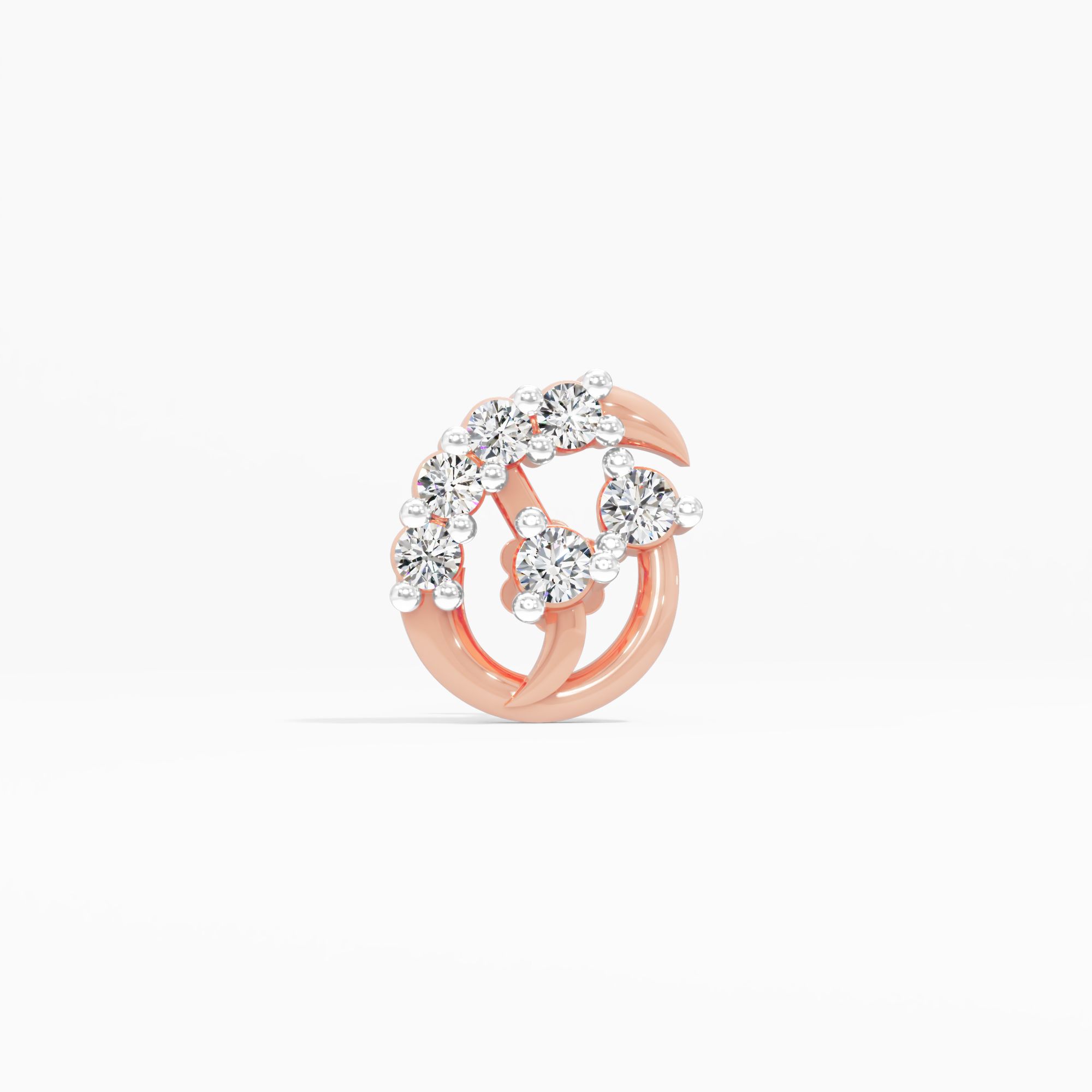 A miniature galaxy of swirling light. This nosepin features six round diamonds, with a brilliant star-like duo orbiting a larger arc, all captured in polished metal.