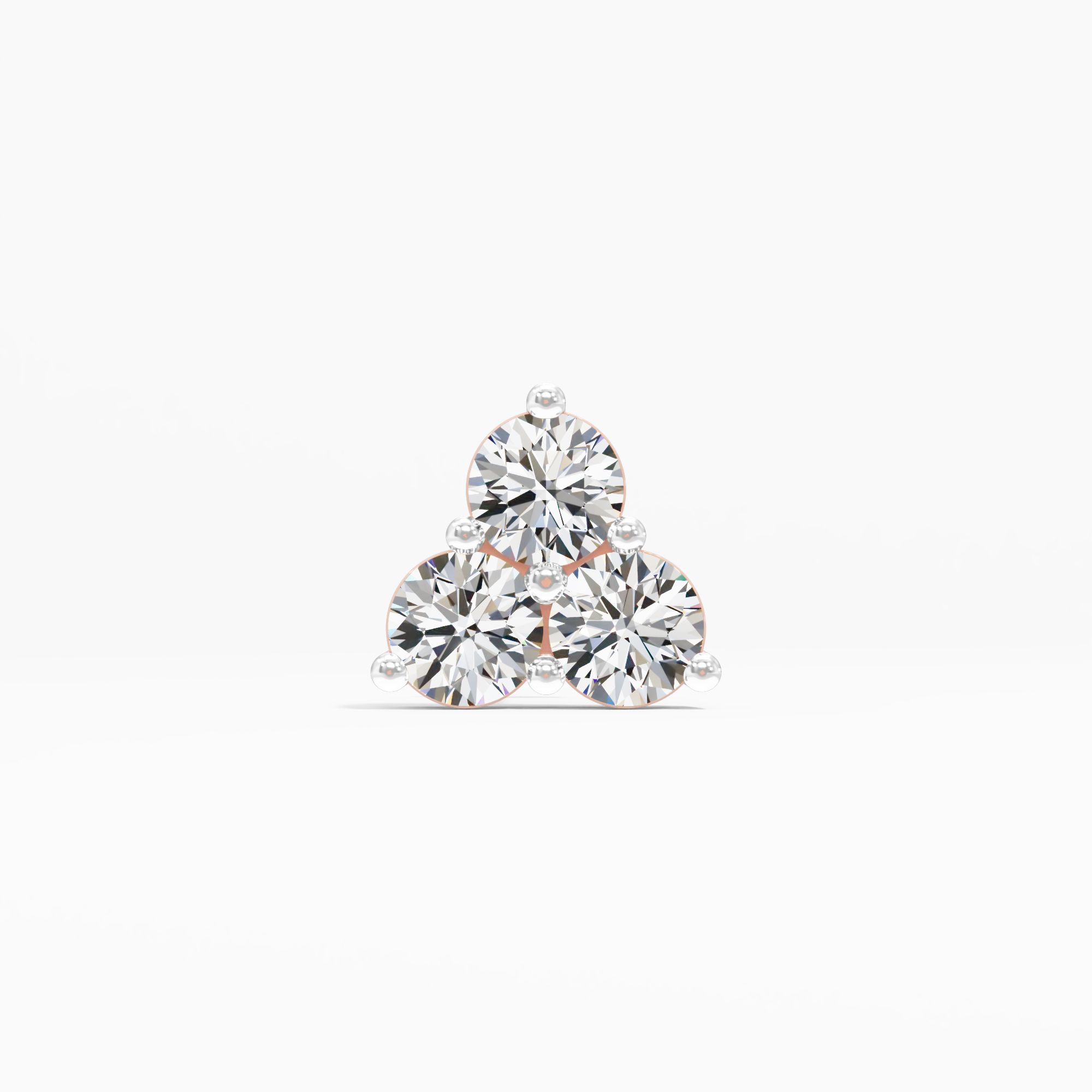 A modern interpretation of the classic trefoil. This nosepin features three brilliant round diamonds in a tight, minimalist cluster, forming a silhouette of perfect, three-point sy... Read More