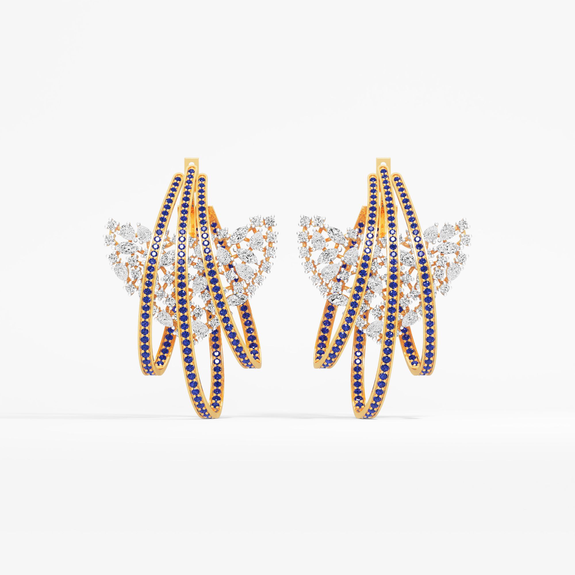 Inspired by a soaring aurora, these dangle earrings feature a majestic wing-like cluster of marquise, pear, and round lab-grown diamonds, framed by sweeping hoops of vibrant round ... Read More
