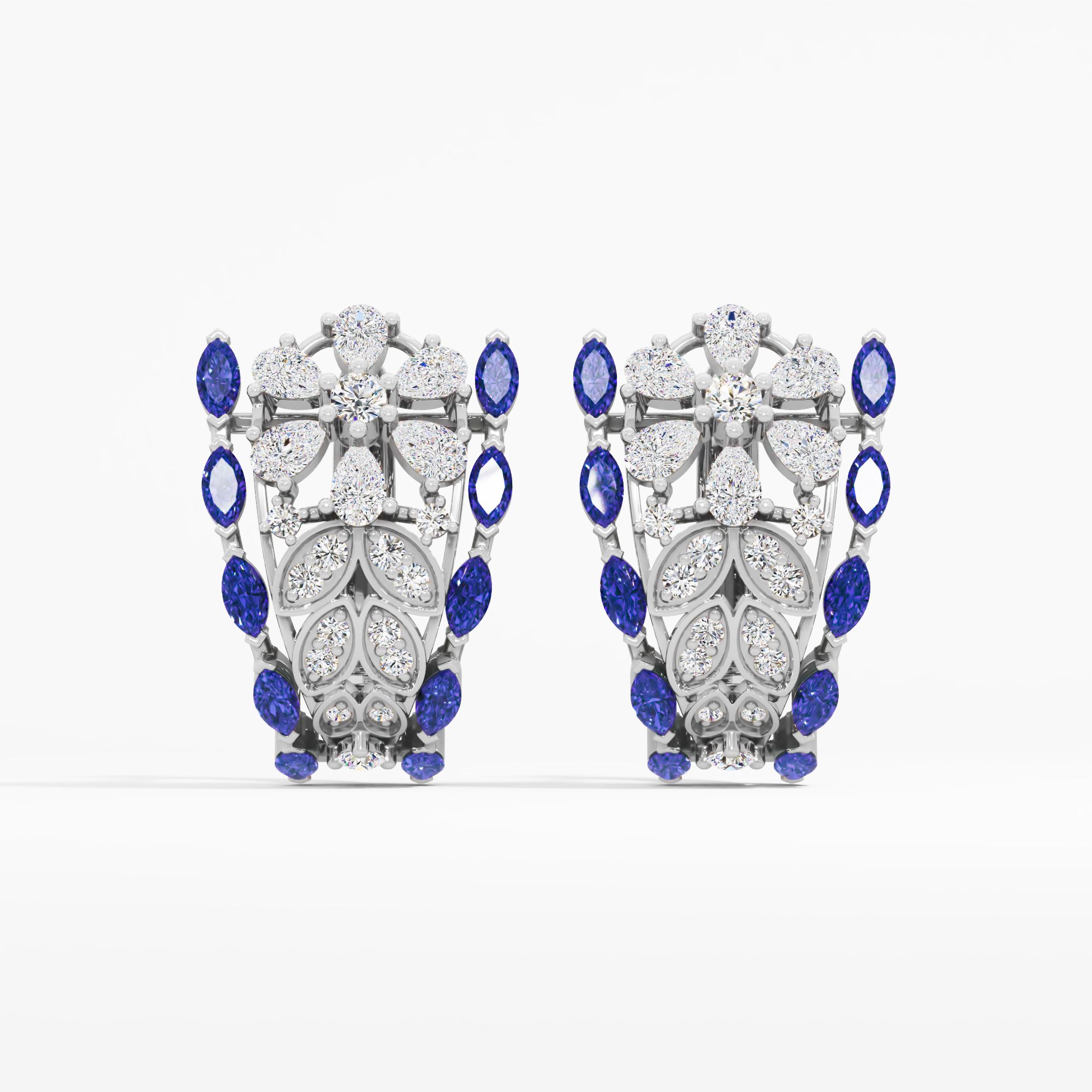 Elegant hoop earrings featuring marquise sapphire accents and sparkling pear and round diamonds arranged in a rich layered pattern that evokes soft luxury, depth, and refined state... Read More