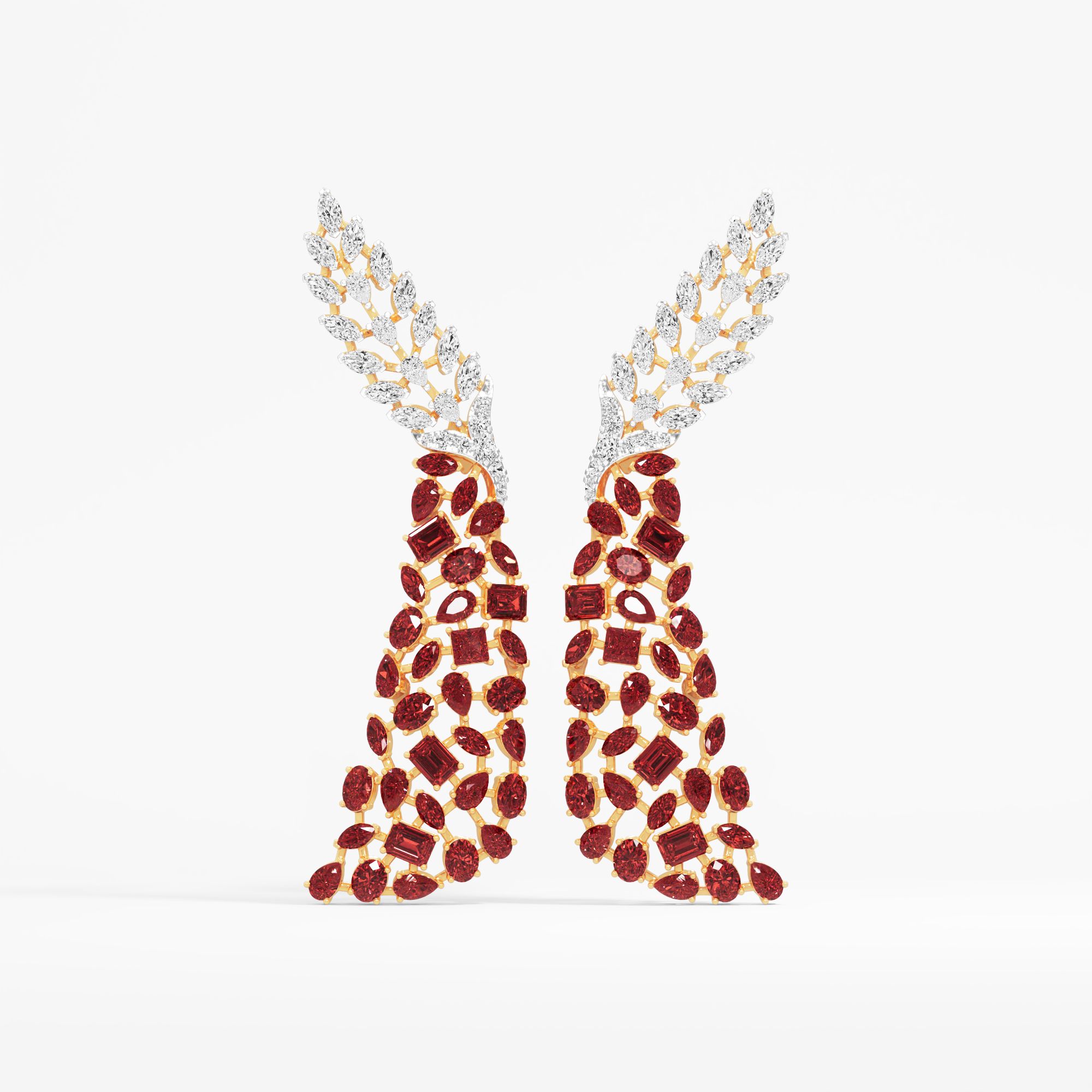 These elegant dangle earrings capture pure luxury with a breathtaking sweep of pear, oval, emerald, princess, and marquise red gemstones. They are crowned by brilliant, nature-insp... Read More