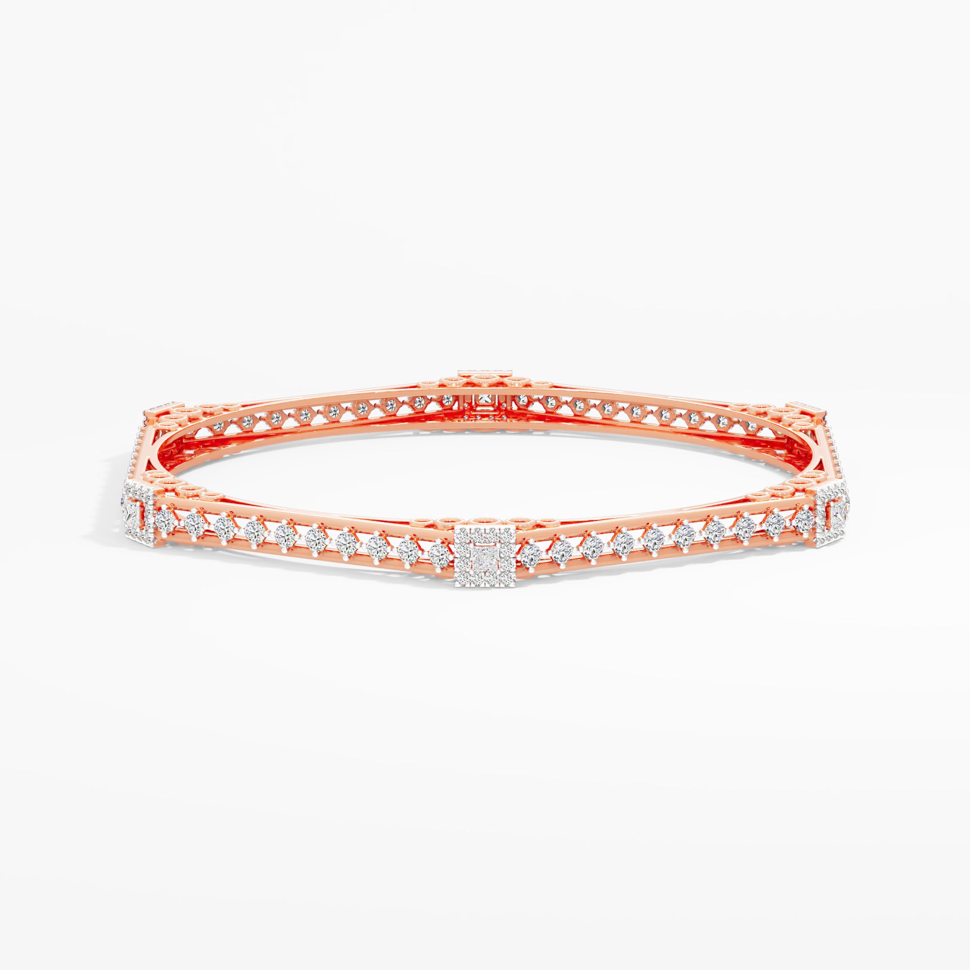A fortress of cosmic light for your wrist. This geometric bangle features structured princess-cut diamond clusters, bordered by a brilliant constellation of prong-set round diamond... Read More