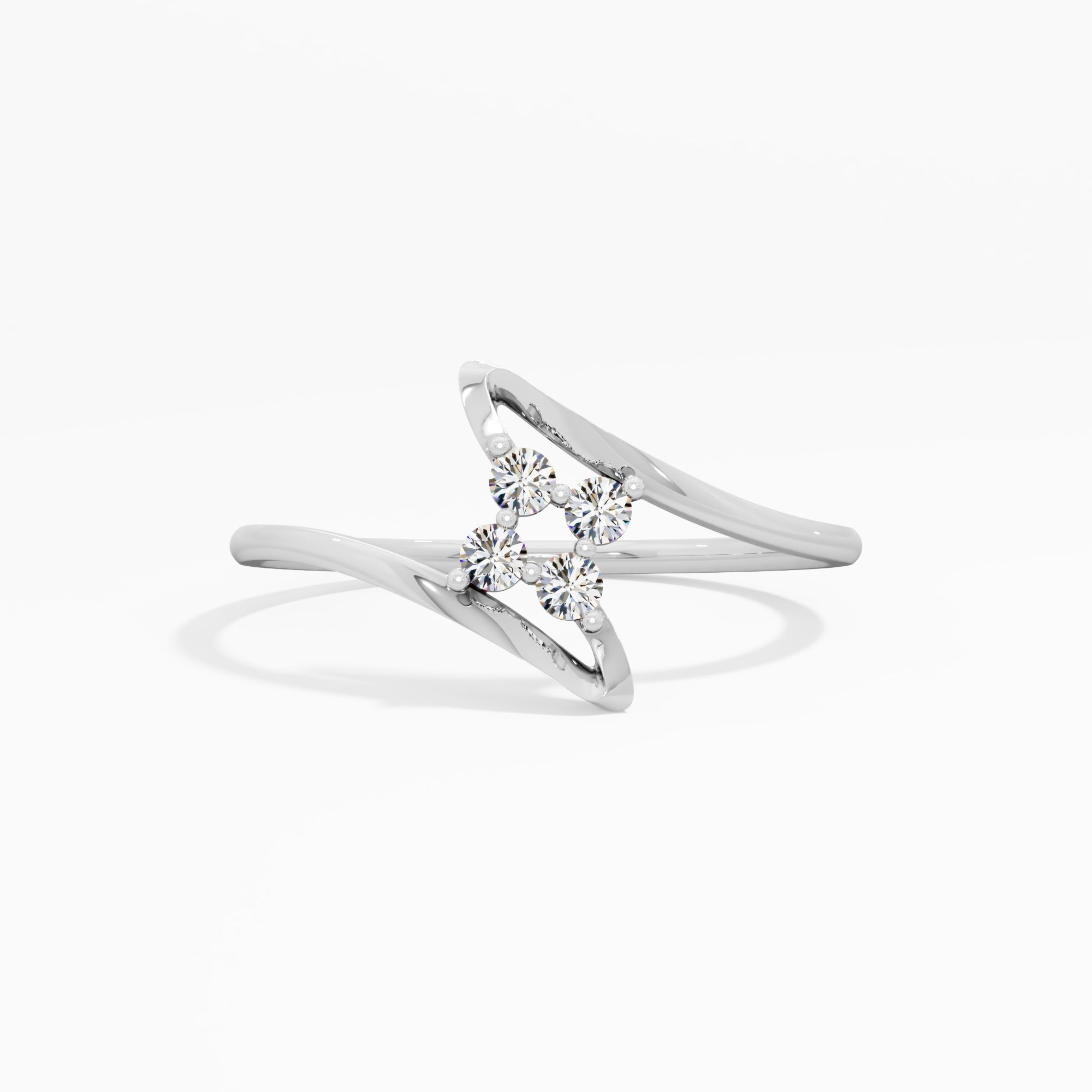Two graceful bands curve toward a center cluster of four round lab grown diamonds. This design captures the magic of two separate paths finally meeting in brilliant light.