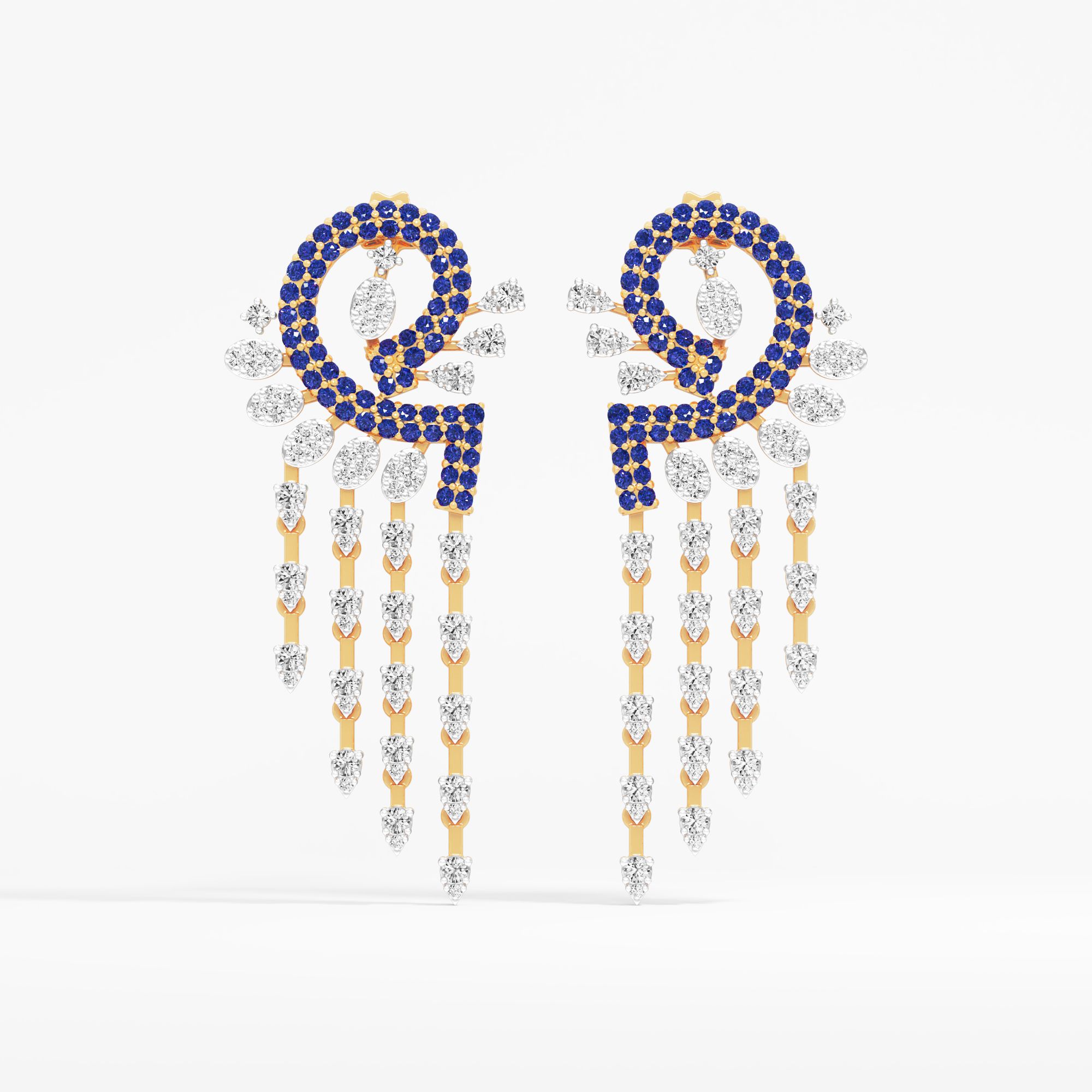 Inspired by nature’s shifting light, these intricate swirl dangle earrings showcase a radiant harmony of round blue gemstones and cascading, light-catching round lab-grown diamonds... Read More
