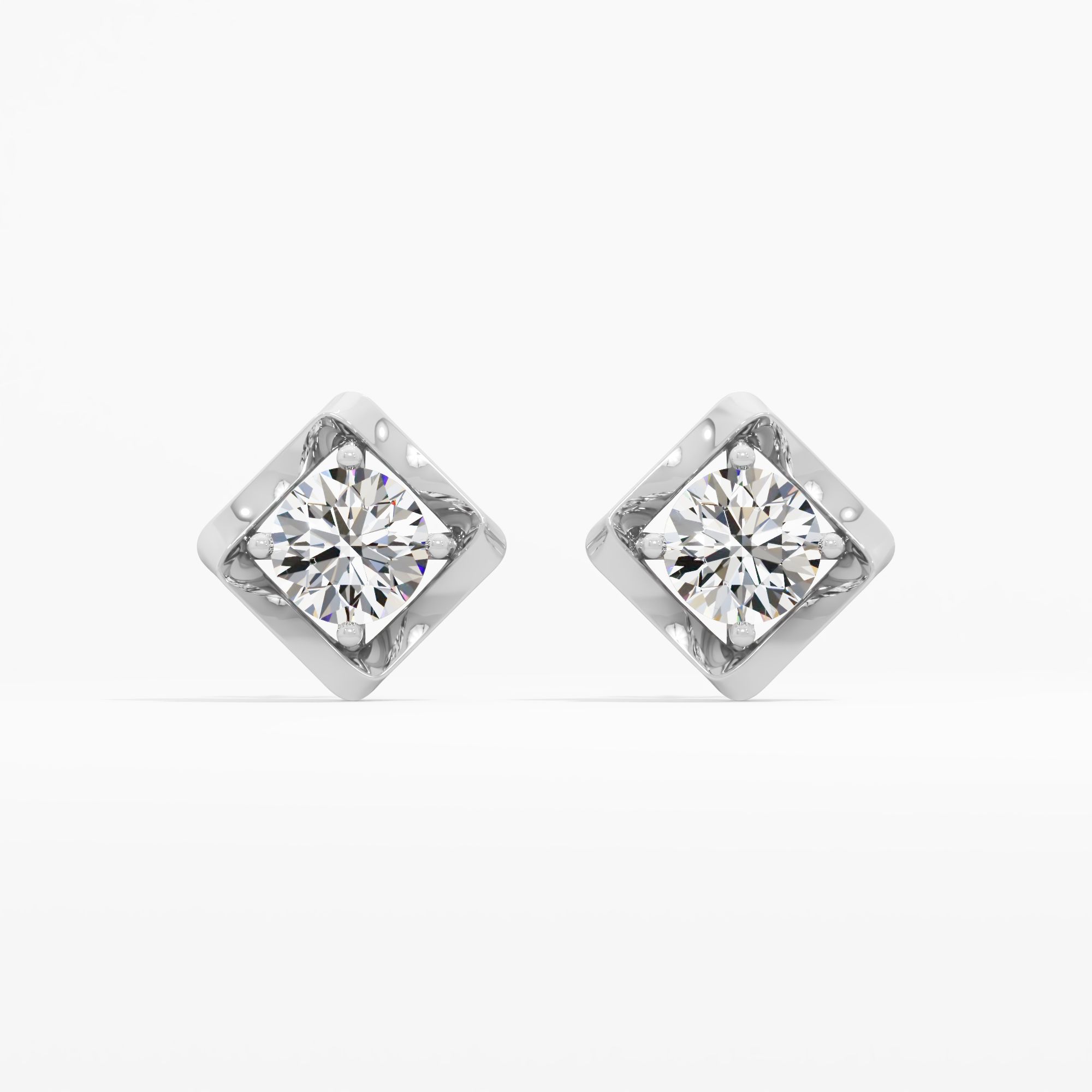 Modern studs showcasing a round lab-grown diamond, enclosed by a bold, diamond-shaped lozenge frame with polished beveled edges for a striking, angular update to the classic solita... Read More