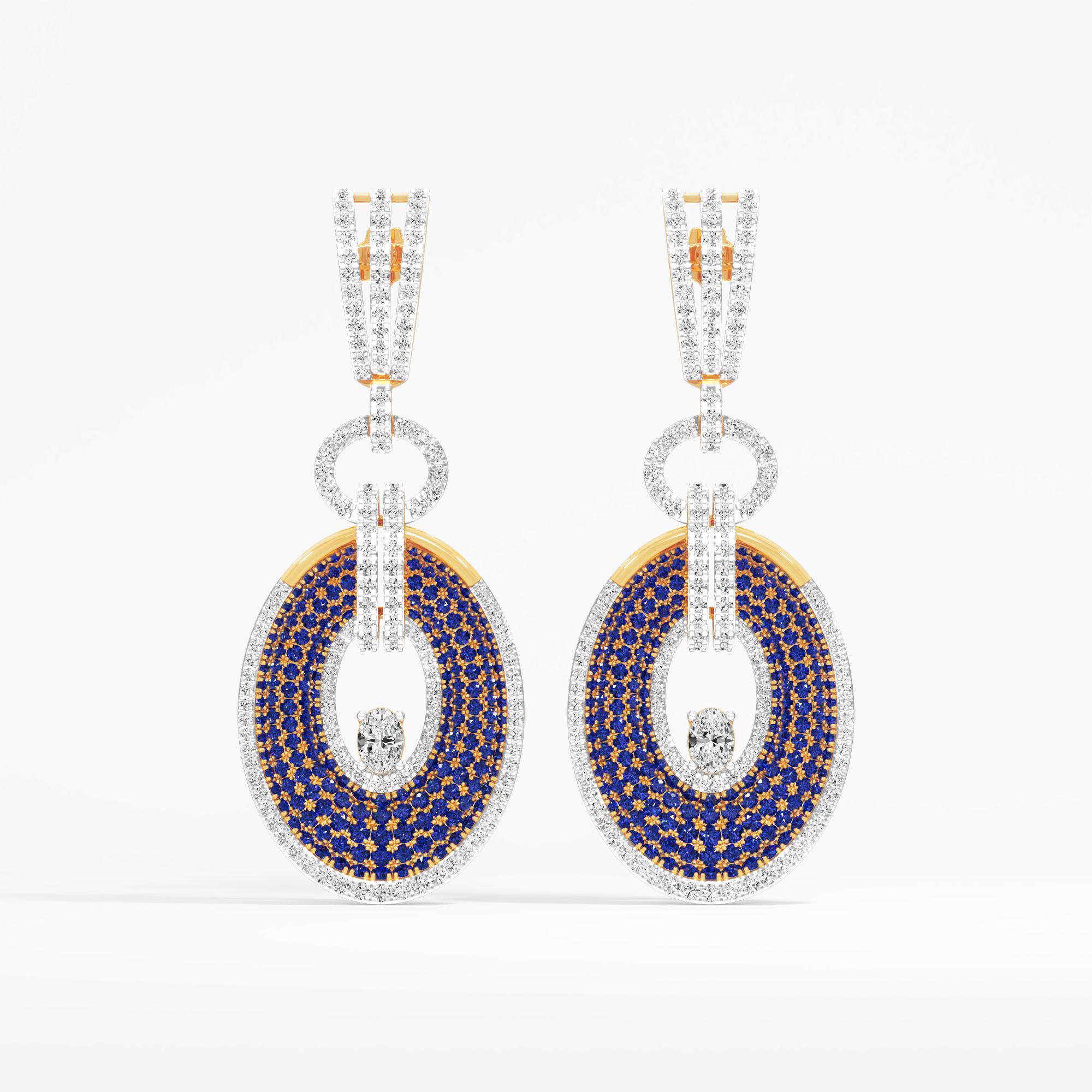 Diamond DetailsShape Round, Oval Color FG Clarity VVS VS Pieces 294 Total Weight 2.59 ct Gemstone DetailsShape Round Color Blue Clarity NA Pieces 362 Total Weight 2.70 ct