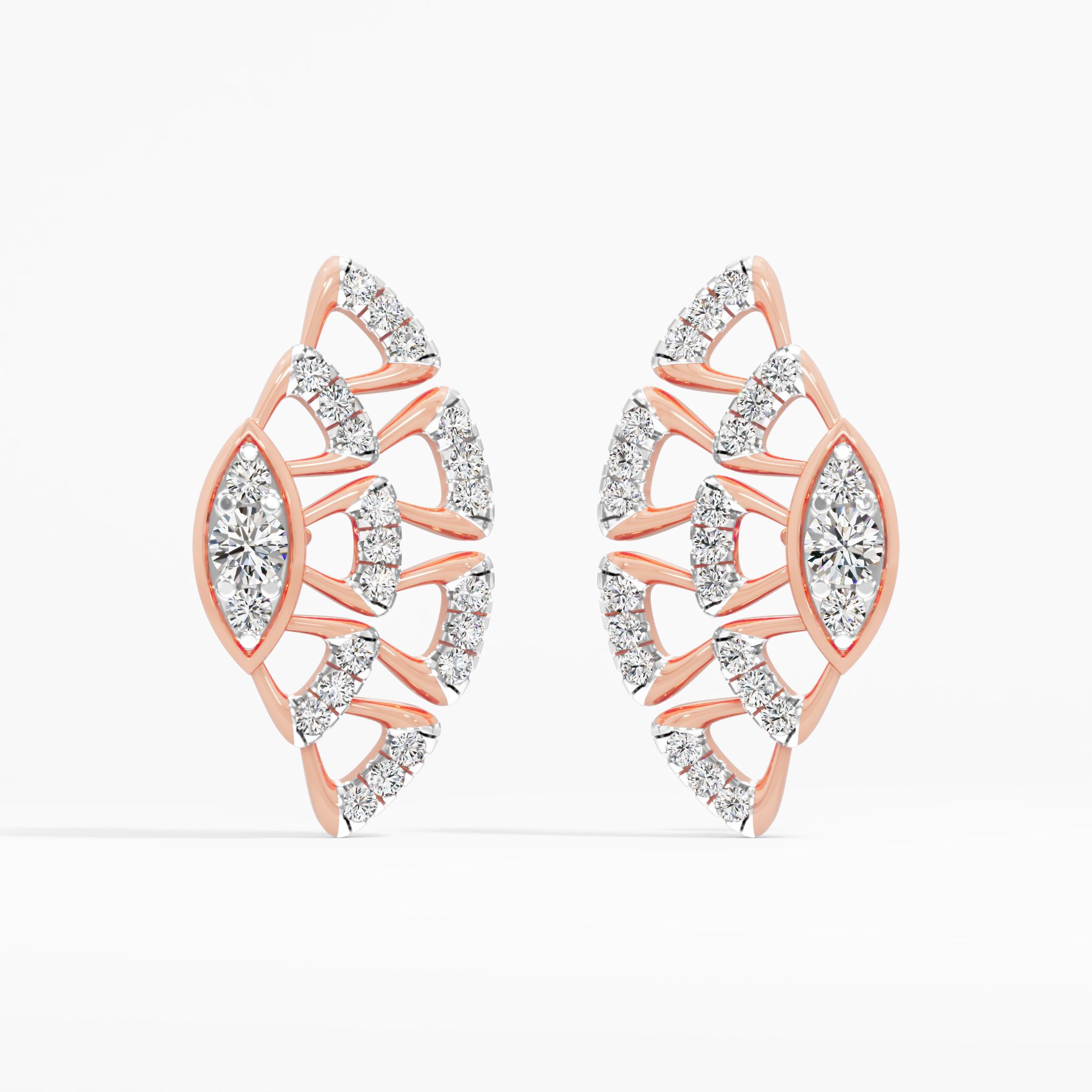 Sculptural stud earrings featuring a central round diamond framed by layered winged arcs of round diamonds, creating depth, symmetry, and refined sparkle with a bold yet elegant pr... Read More