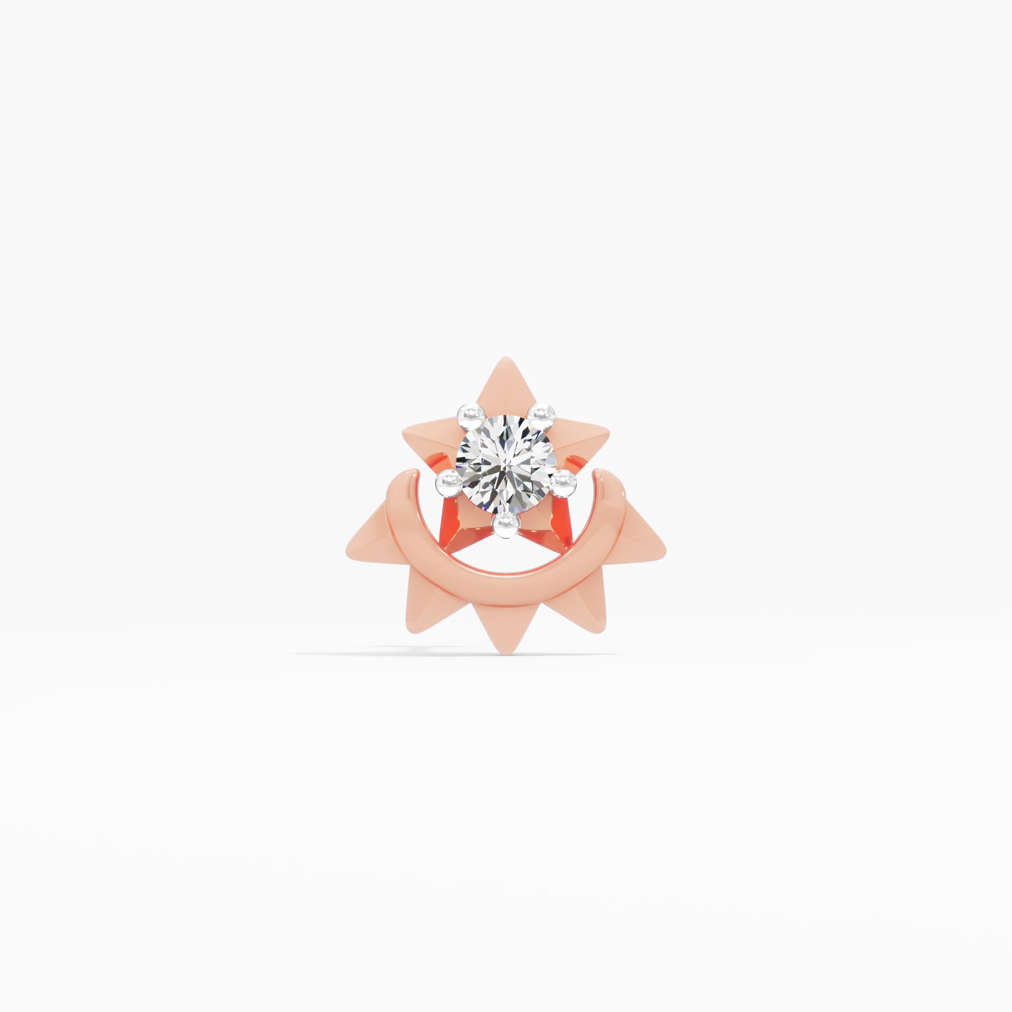 A design with a celestial edge. This unique solitaire nosepin features a brilliant round diamond in a star setting, poised above a modern, spiked crescent arc.