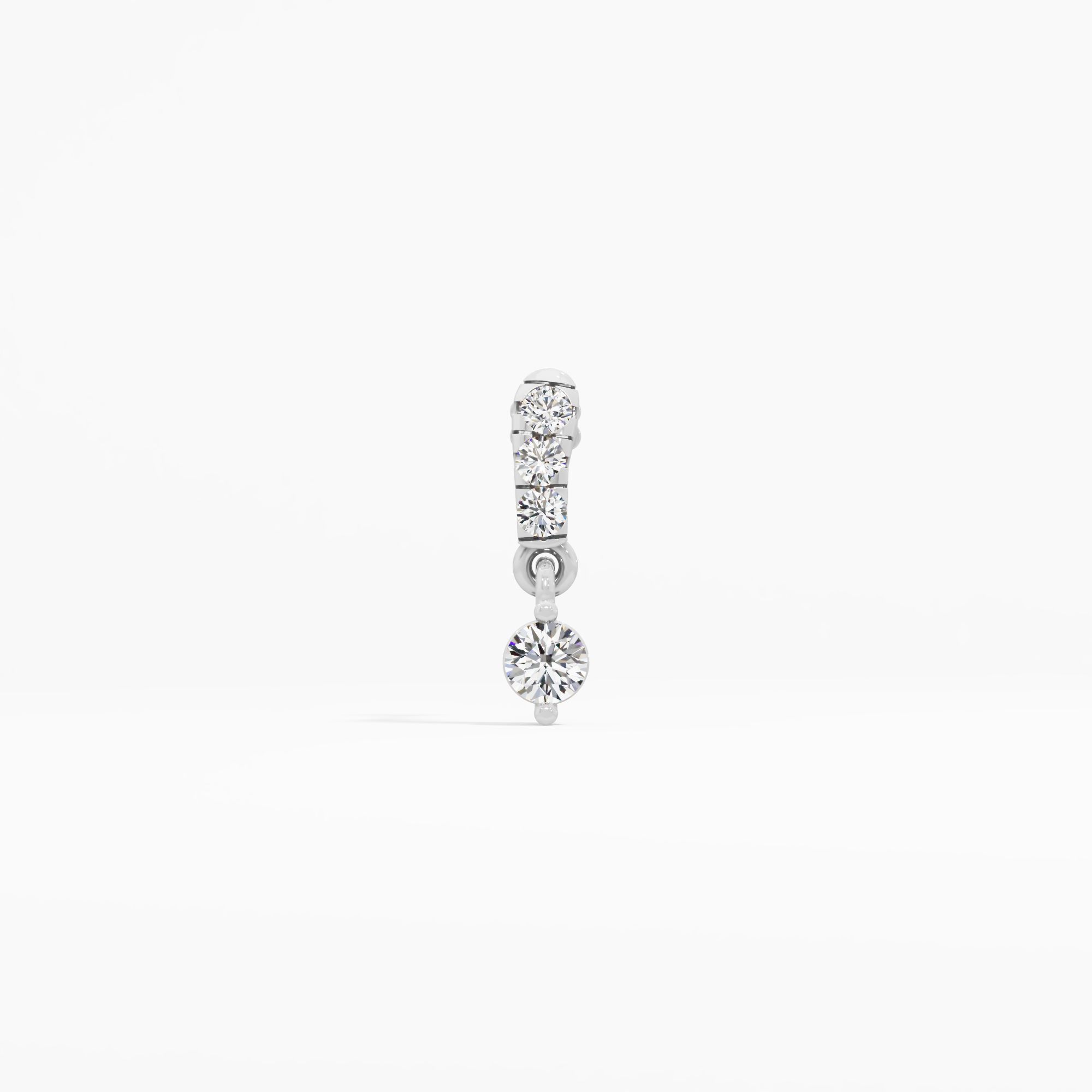 A single, perfect drop of diamond rain. This nosepin features a shimmering pavé path of four round stones, culminating in a larger, brilliant round solitaire drop.