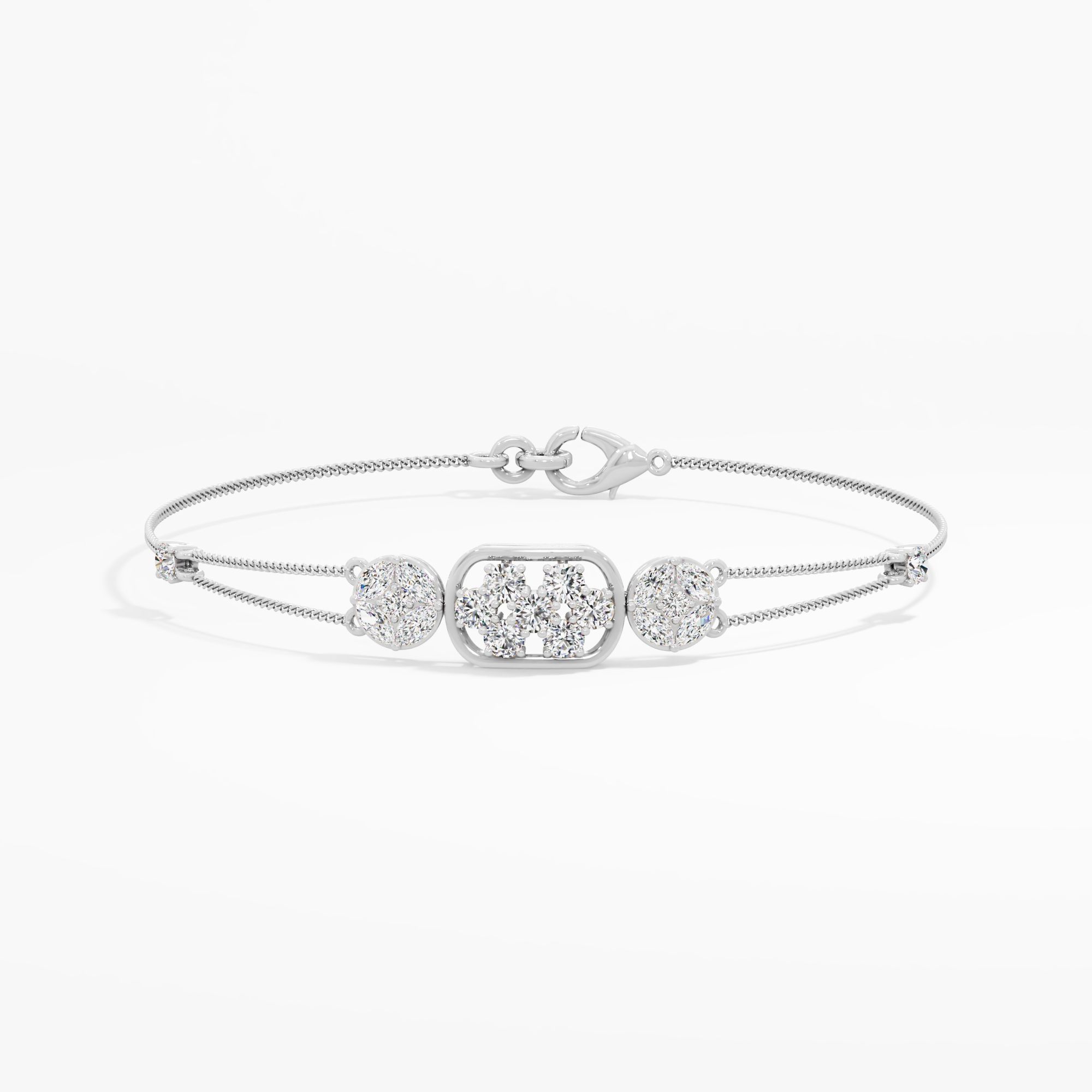 This bracelet features a central geometric cluster of round diamonds. It is flanked by two floral clusters, beautifully crafted with both brilliant marquise and round diamonds.