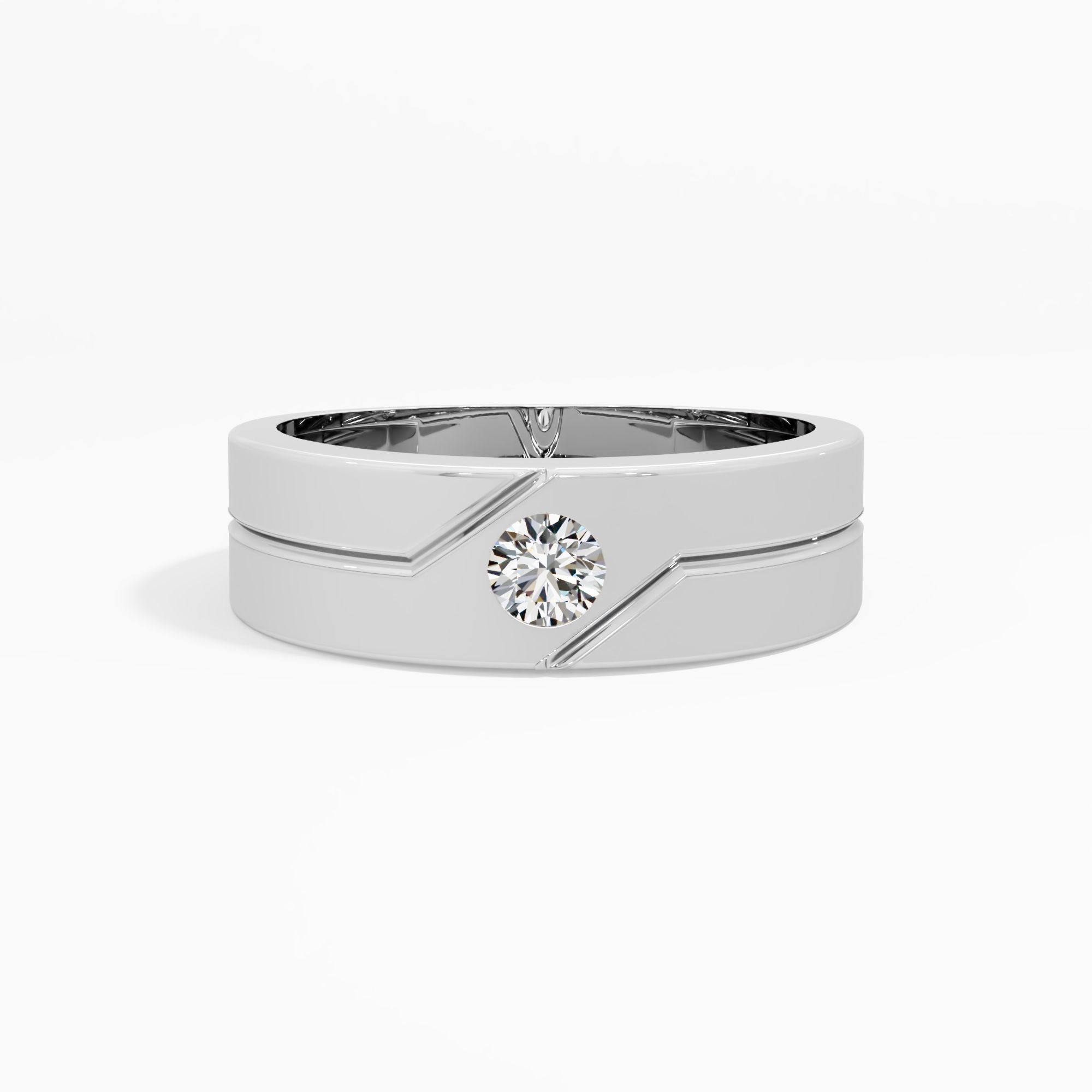Contemporary men’s gold ring with sharp geometric lines and a single round center diamond highlight, crafted for confident style and a sleek, masculine presence.